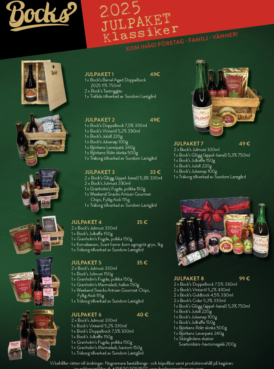 We have also opened Bock's Gastro & Pub restaurant and village shop in connection with the brewery. Everyone is welcome here to socialize and enjoy the tasty food and delicacies of the master brewer. The area is also home to three goats, be sure to visit to us.