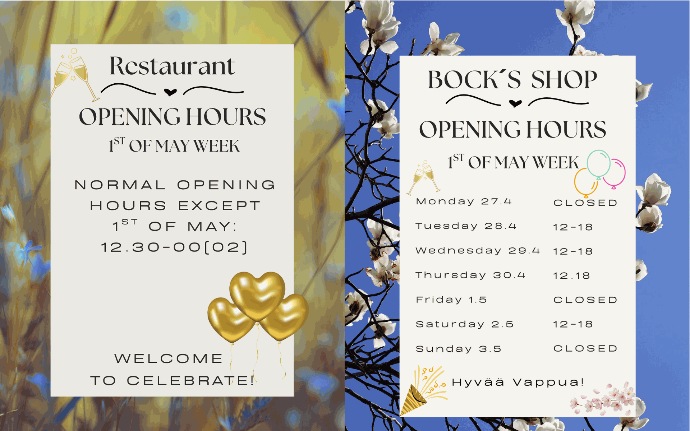 We have also opened Bock's Gastro & Pub restaurant and village shop in connection with the brewery. Everyone is welcome here to socialize and enjoy the tasty food and delicacies of the master brewer. The area is also home to three goats, be sure to visit to us.